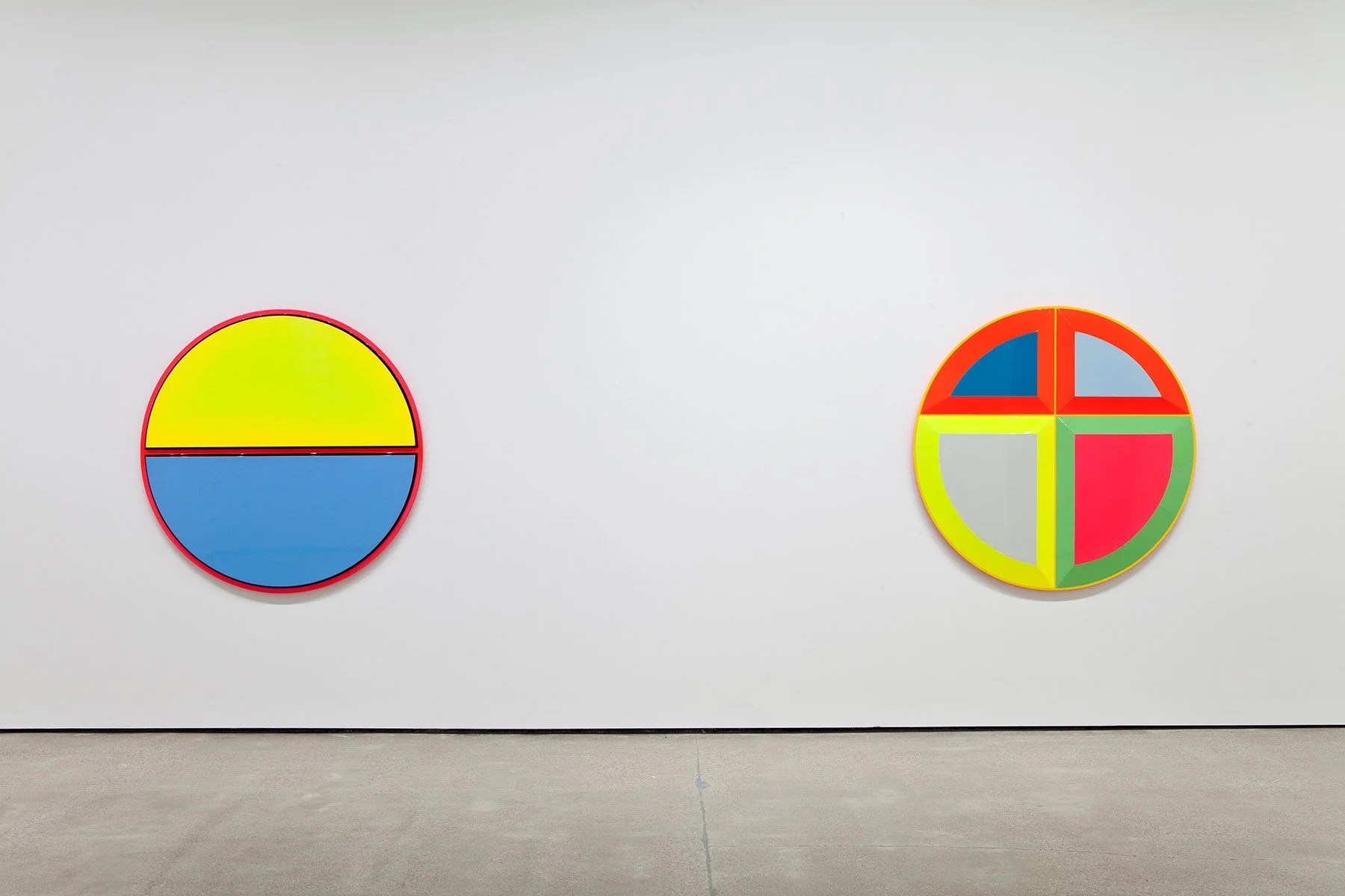 Through this collection of urethane paintings, Fishman explores our contemporary global condition, in which drugs construct and contest identity. The work employs scale shifts and chromatic juxtapositions to turn tiny commodities into large signs and corporate logos that promise health, beauty, pleasure, and the transcendence of death. Created through a combination of industrial and hand-based practices, their reflective surfaces, physical presence, and phenomenological impact make these works socially critical. They emphasize our pervasive medical condition that extends from the physical to the virtual and from the personal to the political.
