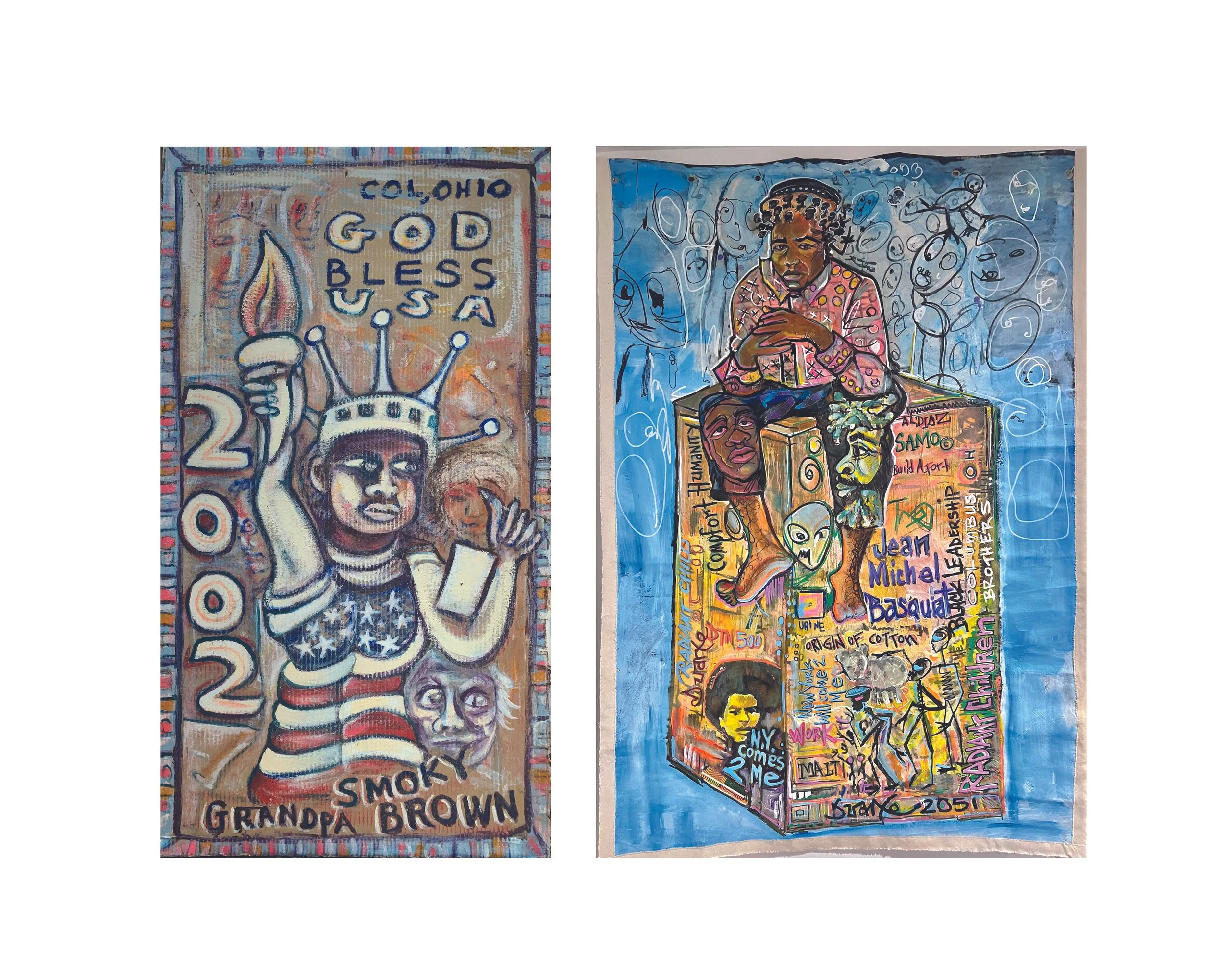Smoky Brown was born in 1919 in Dayton, Ohio. The young man then known as Russell Purce, Jr. apprenticed with his grandfather, who was an ornamental plasterer and later worked as a stone carver, muralist, sign painter, and cartoonist. Brown also worked on the carnival circuit, an experience that would influence his art in future years. In 1978, after retiring from General Motors, Smoky Brown became a full-time artist. A friend of older artists like Elijah Pierce and William Hawkins, Smoky Brown especially befriended youngsters just beginning their craft. Duarte Brown was one of his young artist followers after meeting at ACE Gallery in the Short North over 30 years ago. In 2019, Duarte Brown inherited the Smoky Brown Collection following the elder Brown’s death.